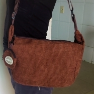 COD 5520 BOLSA TRANSVERSAL VELUDO ALÇA EM NYLON ZIPER MARROM TAMANHO MEDIO