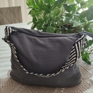 COD 5521 BOLSA TRANSVERSAL VELUDO CINZA ALÇA TRANÇADA PRETO E BRANCO TAMANHO MEDIO