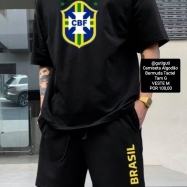 COD 5534 CONJUNTO CAMISETA ALGODÃO BERMUDA TACTEL PRETO COM LOGO BRASIL TAM P M G