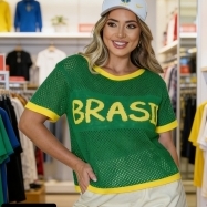 COD 5533 CROPED PARA SOBRE POSIÇÃO EM TRICO MANGAS SINO BRANCO VERDE AMARELO VESTE 36 AO 42