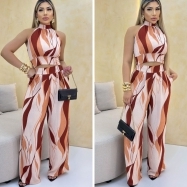 COD 5411 CONJUNTO CREPE ESTAMPADO CROPED M FRENTE UNICA ELASTICO NAS COSTAS CALÇA COM ELASTICO TAM G