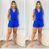 COD 5430 CONJUNTO COLETE SHORT CREPE AZUL BIC FORRADO BOTÕES BOLSOS ELASTICO NA CINTURA TAM M