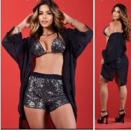 COD 5023 CONJUNTO KIMONO SHORT E TOP S/ BOJO PAETES VESTE 40 AO 42