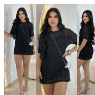COD 5485 MAXICAMISETA TULE COM BRILHO E VESTIDO MALHA CANELADA PRETA VESTE 36 AO 42