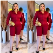 COD 5487 CONJUNTO CASACO E BERMUDA TECIDO ALFAIATARIA VINHO VESTE 46 E 48