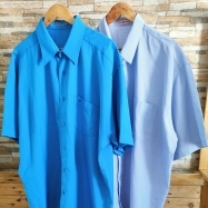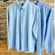 COD 0693 CAMISA SOCIAL MASCULINA TAM G EM ALGODÃO AZUL MESCLADO E AZUL