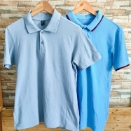COD 0695 CAMISA POLO EM MALHA DE ALGODÃO TAM P NAS CORES CINZA E AZUL