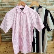 COD 0727 CAMISA EM ALGODÃO BRANCO COM LISTRAS ROSA TAM M