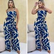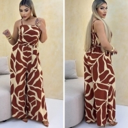 COD 5408 MACACÃO CREPE ESTAMPADO ALCINHAS REGULAVEIS E ELSTEQUE NAS COSTAS TAM G