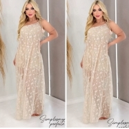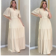 COD 5471 VESTIDO LONGO ARRASTÃO SAIDA DE PRAIA COM SHORT E CROPED NA COR NUDE VESTE M E G