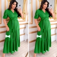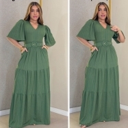 COD 5457 VESTIDO LONGO EM MALHA SCOLTT NA COR VERDE COM ESTALISTICO NA CINTURA VESTE 42 AO 46