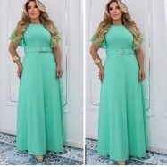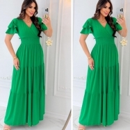 COD 5460 VESTIDO LONGO MALHA E TULE NA COR VERDE CINTO DO MESMO TECIDO VESTE 38 A0 42