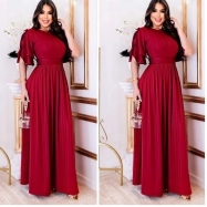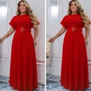 COD 5461 VESTIDO LONGO MALHA E TULE NA COR VERMELHO CINTO DO MESMO TECIDO VESTE 38 A0 42
