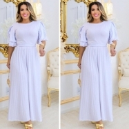 COD 5462 VESTIDO LONGO MALHA E TULE NA COR LILAS CINTO DO MESMO TECIDO VESTE 38 A0 42