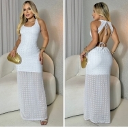 COD 5459 VESTIDO LONGO EM MALHA SCOLTT NA COR BRANCA COM CINTO DO MESMO TECIDO VESTE 42 AO 46