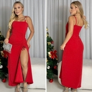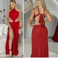 COD 5472 VESTIDO LONGO ARRASTÃO FENDA E AMARRAÇÕES NAS COSTAS NA COR VERMELHO S/BOJO TAM M