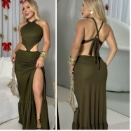 COD 5474 VESTIDO LONGO ARRASTÃO FENDA E AMARRAÇÕES NAS COSTAS NA COR VERDE S/BOJO TAM M