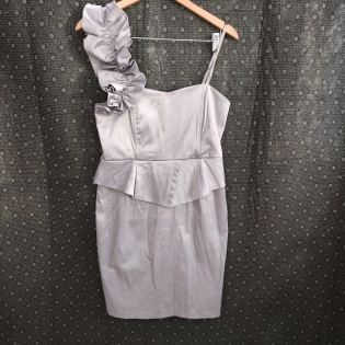 COD 0680 VESTIDO OMBRO UNICO EM ALFAIATARIA ACETINADA ZIPER NAS COSTAS TAM M