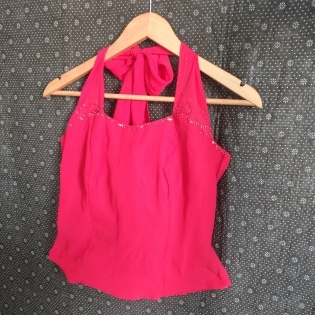 COD 0528 BLUSA FRENTE UNICA EM CREPE VERMELHO COM ASPAS E ZIPER NAS COSTAS TAM M