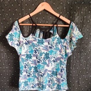 COD 0532 CAMISETA EM CREPE FLORAL COM ALCINHAS E MANGAS TAM M