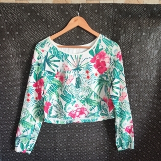 COD 0539 BLUSA CROPED CREPE FLORAL TAM M