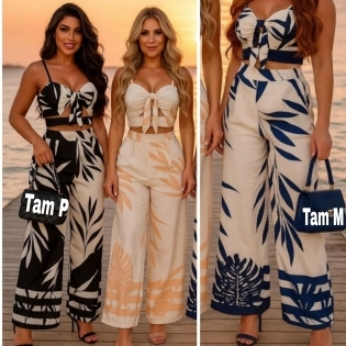 COD 5397 CONJUNTO CALÇA ELASTICO NA CINTIRA E ZIPER CROPED ELASTICO NAS COSTAS CREPE TAM P M