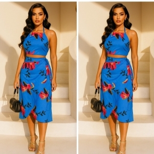 COD 5398 CONJUNTO SAIA ENVELOPE E CROPEDE COM AMARRAÇÃO NAS COSTAS CREPE VESTE 38 AO 42