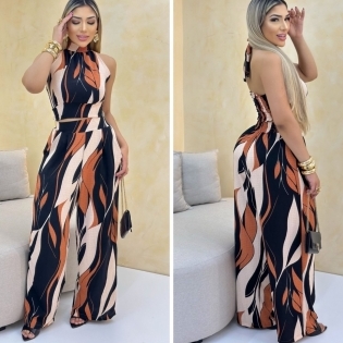 COD 5412 CONJUNTO CREPE ESTAMPADO CROPED M FRENTE UNICA ELASTICO NAS COSTAS CALÇA COM ELASTICO TAM G