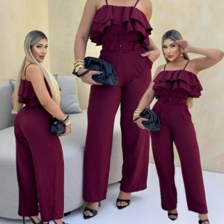 COD 5416 MACACÃO BOHO CREPE VINHO BOLSOS ALÇAS REGULAVES CINTO E ZIPER NAS COSTAS TAM M