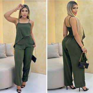 COD 5438 MACACÃO EM CREPE VERDE MUSGO ELASTICO NAS COSTAS BOLSOS E ALÇAS REGULAVEIS TAM G