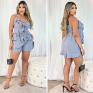 COD 5437 CONJUNTO BLUSA BOHO SHORT AMAARAÇÕES ALCINHAS REGULAVEIS E BOLSOS CREPE CINZA TAM M