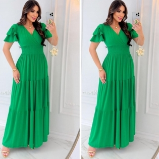COD 5457 VESTIDO LONGO EM MALHA SCOLTT NA COR VERDE COM ESTALISTICO NA CINTURA VESTE 42 AO 46