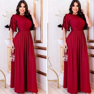 COD 5477 VESTIDO LONGO EM RIBANA VERMELHO COSTAS NUAS E ZIPER S/EM BOJO VESTE 36 AO 42