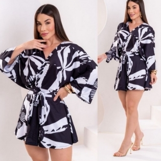 COD 5480 CONJUNTO SHORT E BODY MALHA DIGITALIZADA BRANCO COM PRETO VESTE M/G