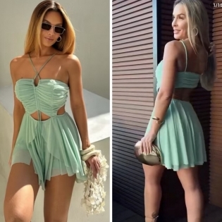 COD 5500 MACAQUINHO EM MALHA E TULE NA COR VERDE CLARO COM BOJO VESTE M E G