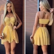 COD 5499 MACAQUINHO EM MALHA E TULE NA COR AMARELO OURO COM BOJO VESTE M E G