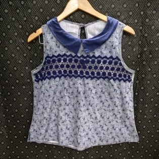 COD 0551 BLUSA EM TECIDO DE ALGODÃO ESTAMPADO E APLICÇÃO EM GRIPY TAM M