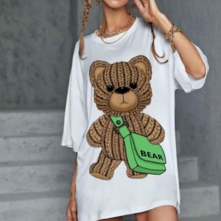 COD 5514 CAMISETA BLUSÃO EM POLIESTER BRANCO DETALHE URSINHO MARROM E VERDE TAM G