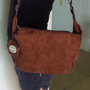 COD 5520 BOLSA TRANSVERSAL VELUDO ALÇA EM NYLON ZIPER MARROM TAMANHO MEDIO