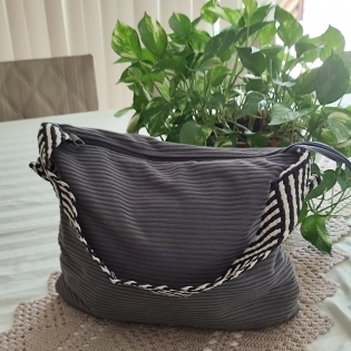 COD 5521 BOLSA TRANSVERSAL VELUDO CINZA ALÇA TRANÇADA PRETO E BRANCO TAMANHO MEDIO