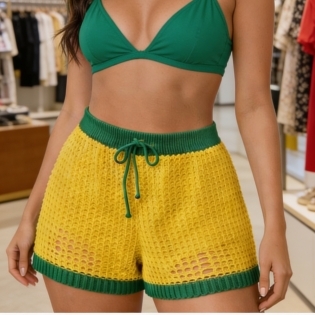 COD 5537 SHORT EM TRICO MODAL VERDE E AMARELO VESTE 36 AO 44