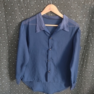 COD 0564 BLUSA FEMININA EM ORGANZA AZUL MARINHO COLARINHO EM MALHA TAM M