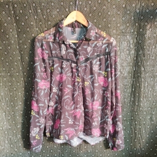 COD 0581 BLUSA EM CREPE PRETO FLORAL TAM M