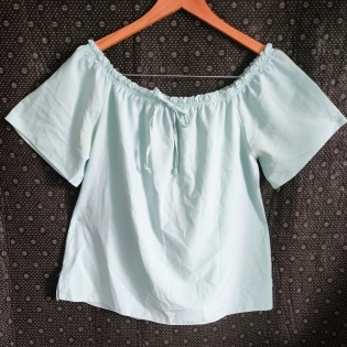 COD 0583 BLUSA OMBRO A OMBRA SEDA AZUL CLARO TAM GG