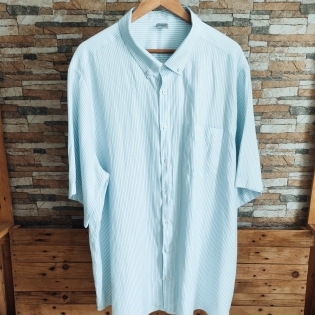 COD 0734 CAMISA EM ALGODÃO E VISCOSE BRANCA COM LISTRAS FINAS AZUL CLARO TAM 09