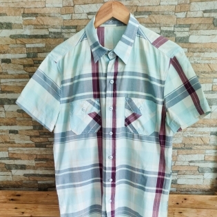 COD 0735 CAMISA QUADRICULADA ALGODÃO ESVERDEADO CLARO BOLSOS NA FRENTE TAM P
